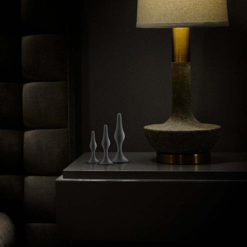 For anyone looking to explore new anal sensations alone or with a partner! Anal Adventures provides many options to choose from. The Silicone Beginner Plug Kit features three plugs in progressing sizes for beginner anal training! They are tapered for comfortable and secure insertion. They are made with StayPut™ technology, ensuring that once the plug is inserted in the body, it won’t pop out! UltraSilk® smooth and made of Puria™ platinum-cured silicone, these plugs are body-safe, phthalate free, fragrance free, latex free, and easy to clean.