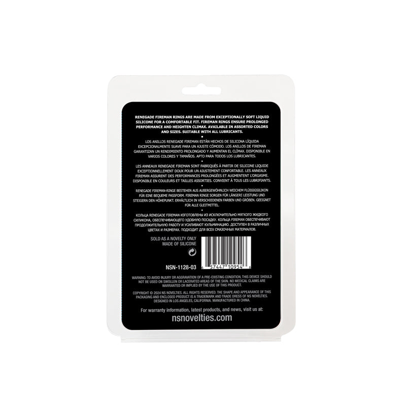Renegade Fireman Rings are made from exceptionally soft liquid silicone for a comfortable fit. Fireman rings ensure prolonged performance and heighten climax. Available in assorted sizes. Suitable with all lubricants.
