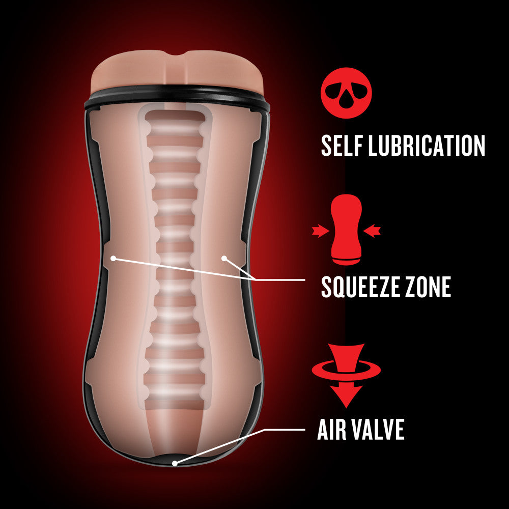 Unlock a world of pleasure like never before with the Bad Boy Next Door. Whether you're seeking thrilling solo experiences or looking to add a spark to couples play. This pocket stroker is self lubricating, just add a little water or saliva and everything gets slippery. Squeeze the cup to open or close the PerfectFlo Air Valve Control for more suction and pleasure. The Coverboy masturbators are soft, flexible, contains no Phthalates, Paraffins, or Latex and is so realistic… it feels like the real thing. Self-lubricating properties are temporary. It will last up to 12 uses. To clean, wash with soap and water. Pat dry and allow to air dry before storing. Use products only with water based lubricants. It is recommended to start using water-based lubricants after self-lubricating properties begin to diminish. Dare to embrace the forbidden allure of the Bad Boy Next Door and experience pleasure on your terms. Your secret liaison with ecstasy awaits!