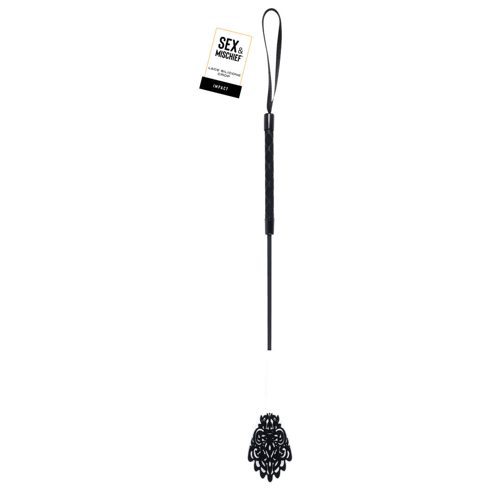 Leave a lasting mark of desire with the Lace Silicone Crop, an elegant and sultry twist on a classic. Featuring a 100% silicone lace-patterned tip, this crop delivers a sharp, tantalising sting while leaving behind a delicate trace of elegance and allure. The intricate lace design adds a layer of erotic indulgence, making each strike as mesmerising as it is thrilling. From a teasing caress to a more commanding impact, the Lace Silicone Crop allows every moment to linger with dark romance and seductive power.