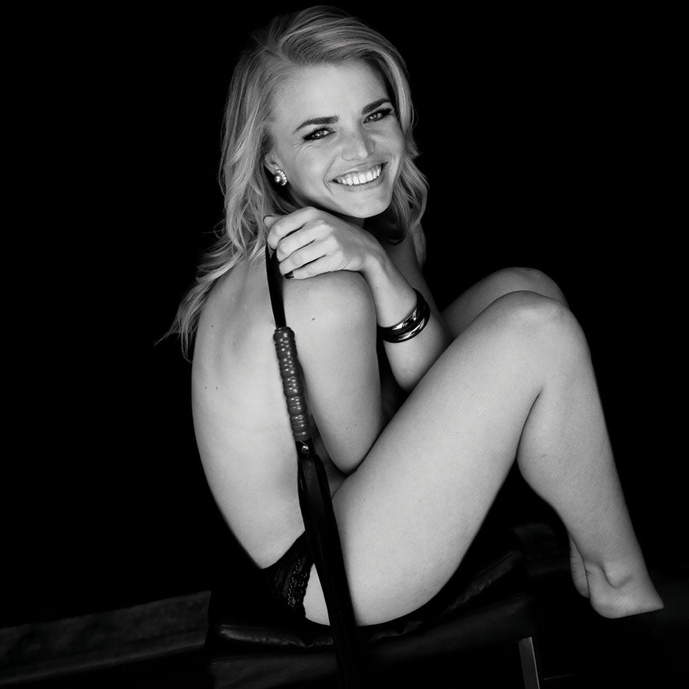 Whip or caress your partner with this faux leather flogger. Beautifully designed wood accent with practical use in mind.
